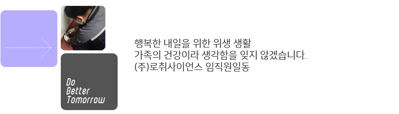 | 안녕하십니까 저희 회사를 찾아주신 고객여러분에게 진심으로 감사드리며, 고객감동주의로 (주)로취사이언스가 보답하겠습니다. |