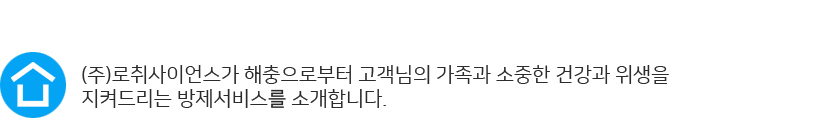 (주)로취사이언스의 방제서비스는 해충의 생태원리를 과학적으로 분석하여 각 해충의 습성에 맞는 방제공법으로 시행되며 해충을 아는전문가들이 현장에 맞는 친환경 약제를 선택하여 시공하므로 아래의 주의사항을 읽어보시고 방제서비스 관리를 받으시면완벽한 해충박멸의 효과를 보실 수 있습니다 |